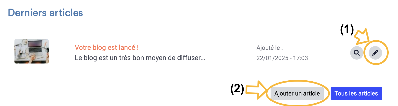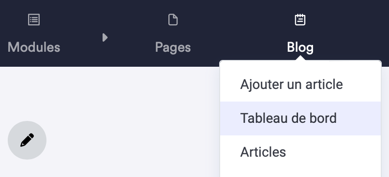 Depuis le tableau de bord du manager, aller dans le menu Blog et choisir Tableau de bord.