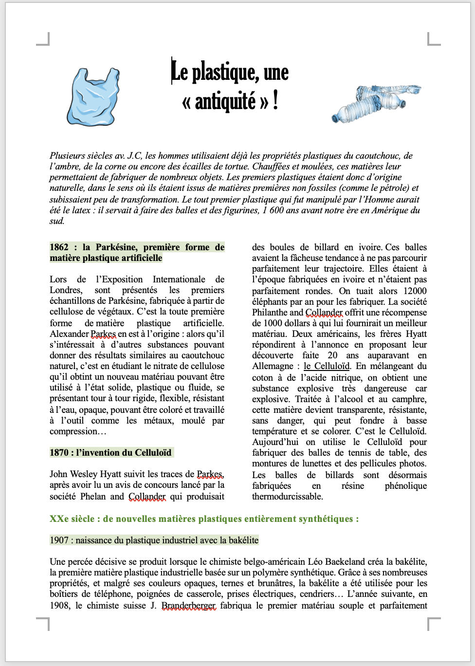 A vous de jouer: Télecharger et ouvrir le document textuel sur les plastiques . Copiez l’ensemble du texte (CTRL + a, CTRL + c) et collez-le dans un nouveau document Word CTRL + V)