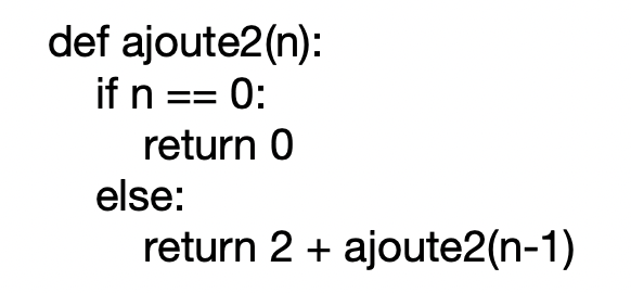 Considérons une fonction ajoute2_iter qui prend N comme paramètre, et qui ajoute N fois 2.